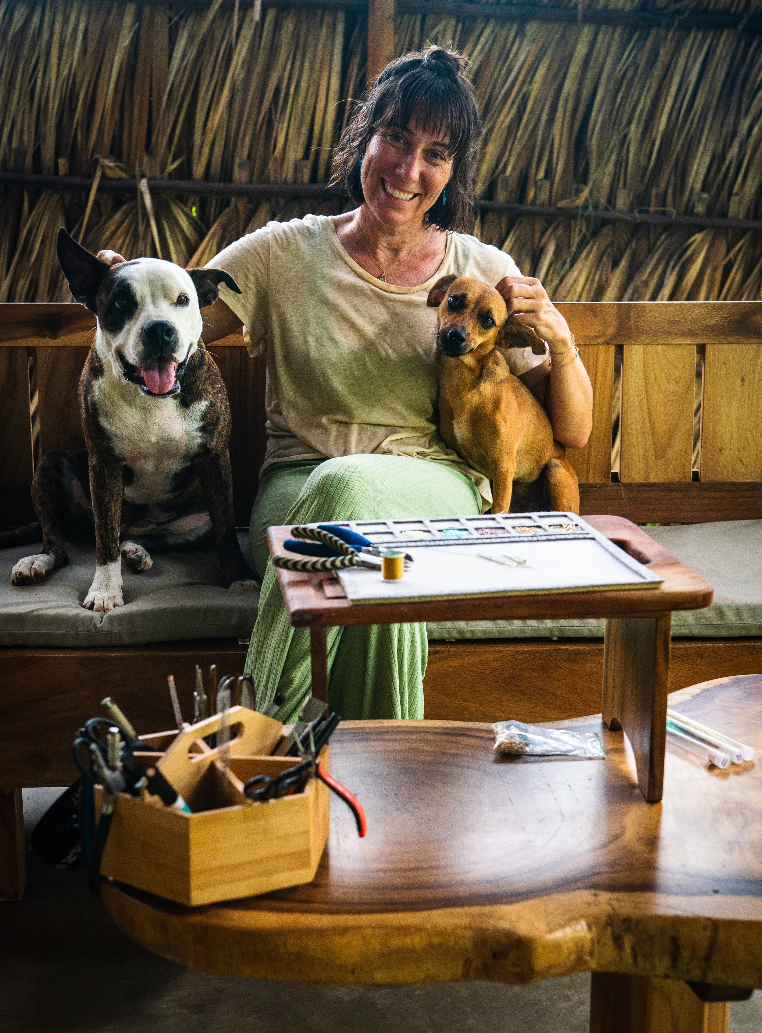 Hi, I'm Cherise Richards, also known as Reesie, and I've been crafting jewelry since 2017. Originally from Oregon, I've lived in Central America for 10 years. My jewelry-making story began by making stained glass windows with my dad. I loved it but soon realized that if I wanted to continue making glass work it needed to be in a way that was travel-friendly. So I started using small pieces of glass to make jewelry and thus began my jewelry journey. From glass I went on to experiment with resin and had a phase where I would use flowers and dead creatures I’d find in the jungle environments I live in to make resin molds. I made many a necklace with the tails of dead scorpions I’d find around my house and that happened to be around the time I named my brand. Thus the name Sting Bling came to be. Although I no longer make insect-themed jewelry due to a lack of demand, (go figure :) and the environmental impact of resin, the name lives on. I’ve tried many different styles of jewelry making but finally settled into the brand I have today - surfer friendly simple metal work and beaded earrings. My love for surfing and beach culture heavily influences my designs. I draw inspiration from the beauty of shells, metals, and vibrant colored beads. In addition to my jewelry making, I am a yoga teacher for Surf With Amigas and hold a BFA in Dance from UCSB and an MFA in Choreography from CalArts.